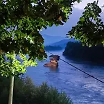 Dieses Apartment bietet eine Küche, die unter anderem mit einer Mikrowelle, einem Wasserkocher und einem Kühlschrank ausgestattet ist. Hier können Gäste verschiedene Aktivitäten genießen, darunter Kanufahren, Wandern und Badminton. Dort gibt es eine Terrasse mit Blick auf die Berge.